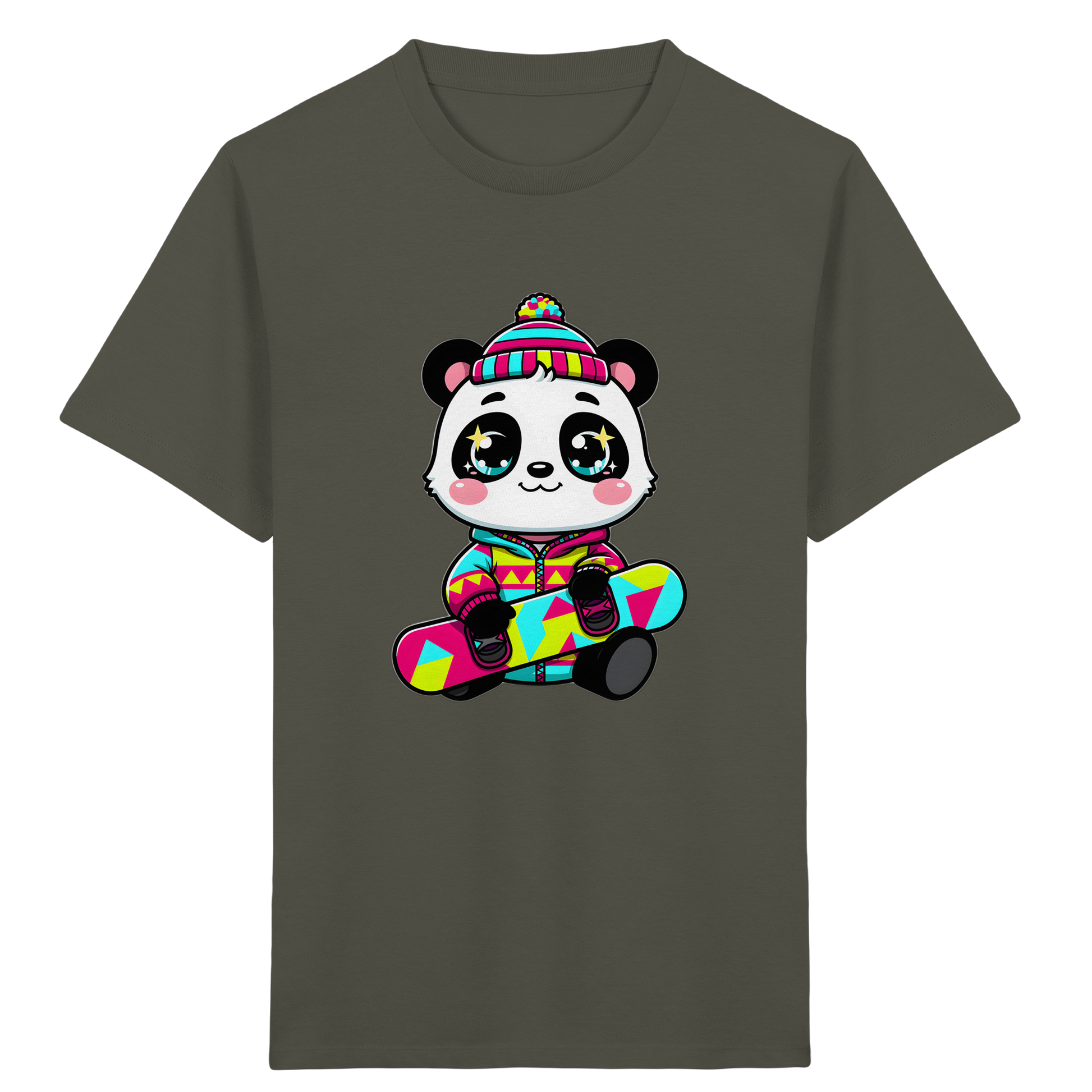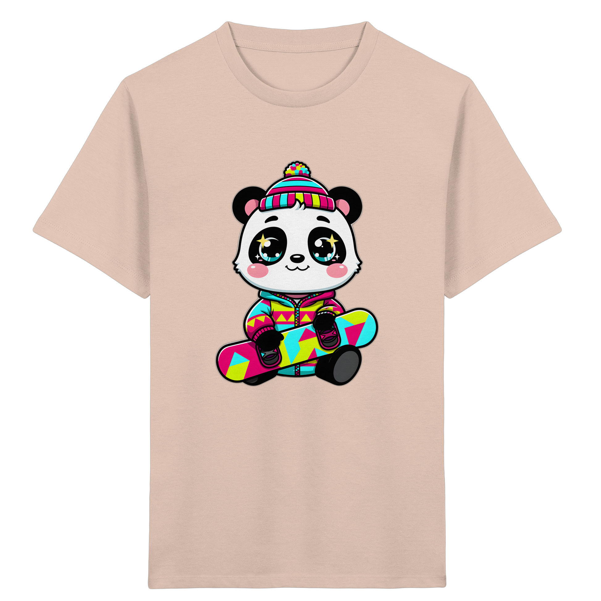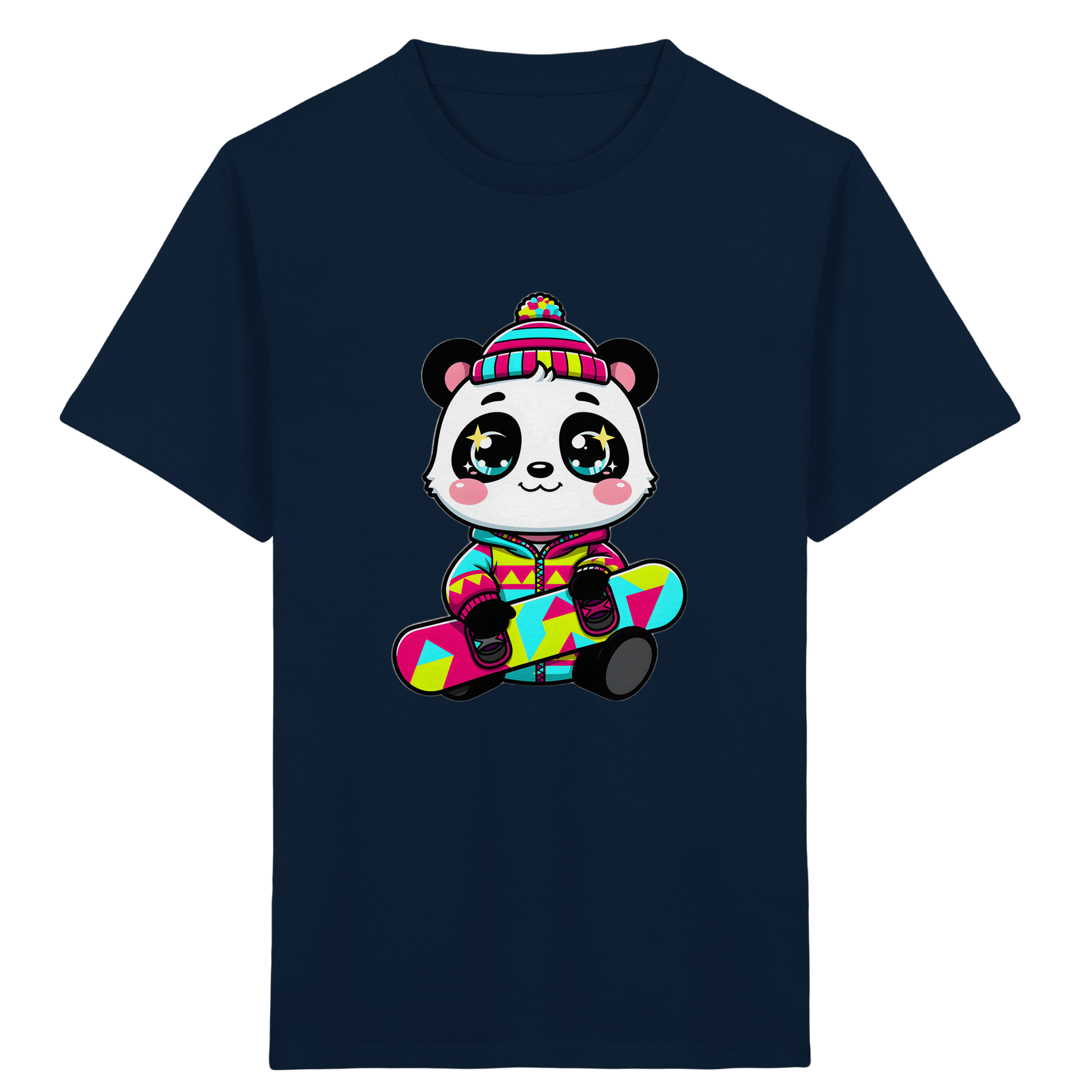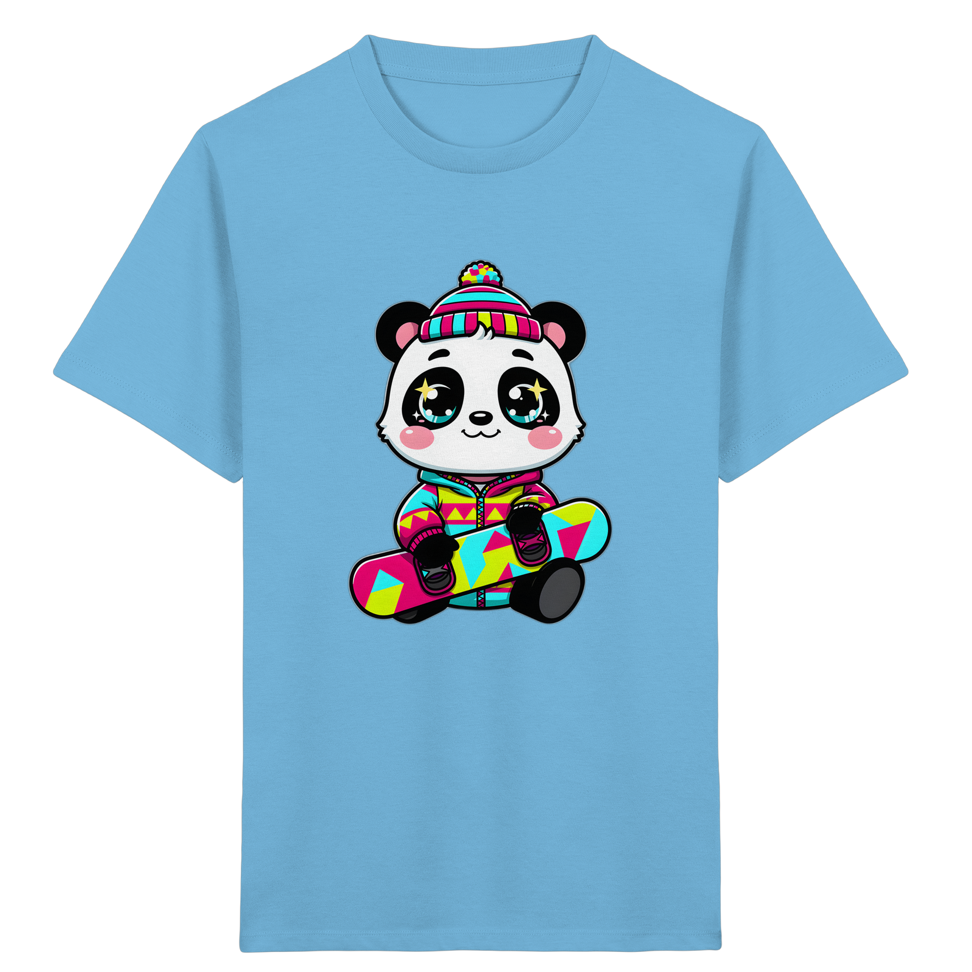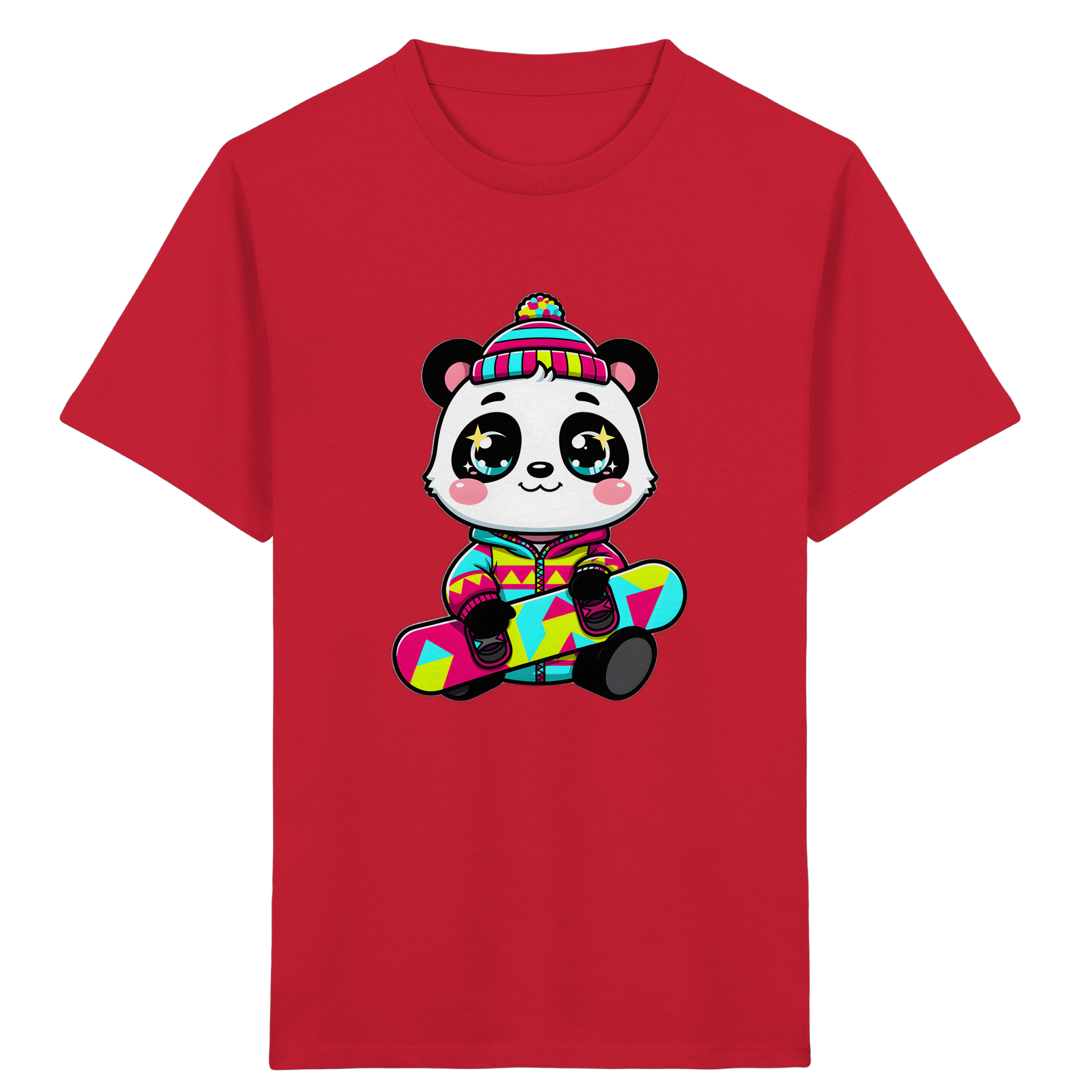 Das Design besticht durch einen fröhlichen Panda in cooler Winterkleidung auf einem Snowboard, kombiniert mit leuchtenden Farben wie Pink, Türkis und Gelb. Geometrische Muster und die strahlenden Augen des Pandas verleihen diesem Shirt einen modernen und trendigen Look, der sowohl Jungen als auch Mädchen begeistern wird. Wir legen Wert auf Qualität: Das T-Shirt ist aus weichen, atmungsaktiven Materialien gefertigt, die den ganzen Tag über angenehm zu tragen sind.
