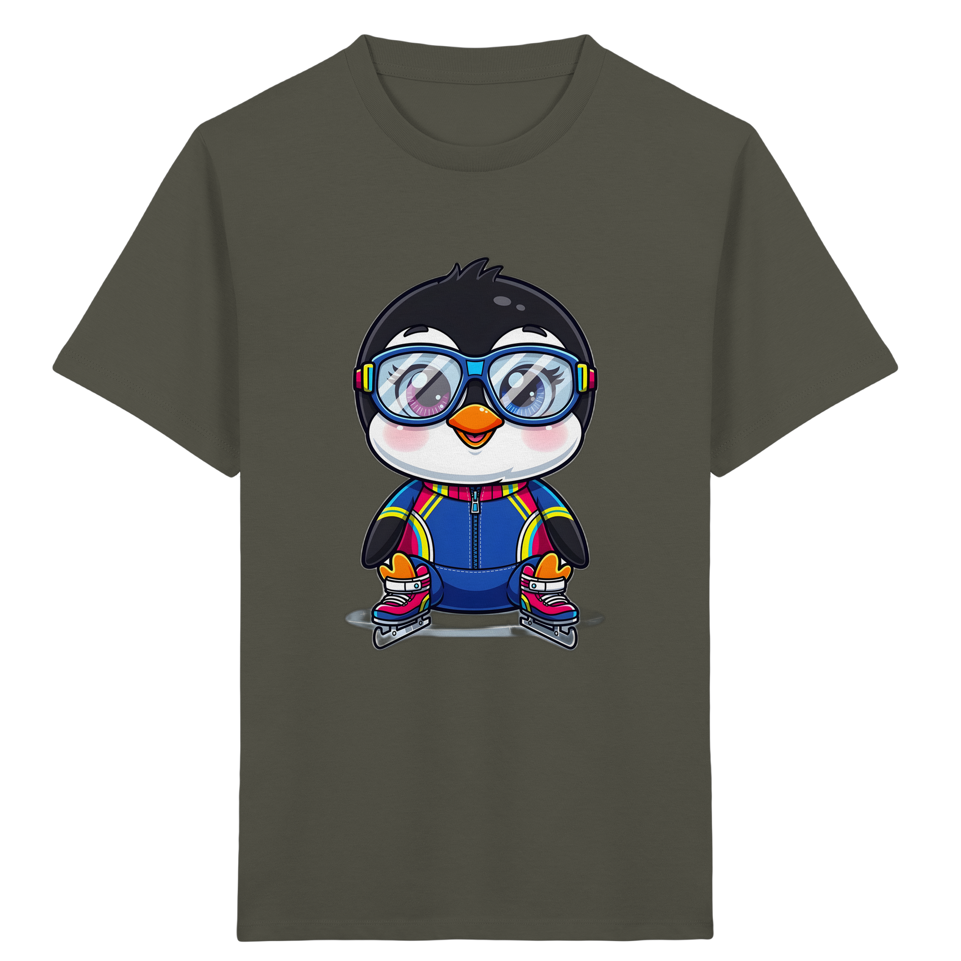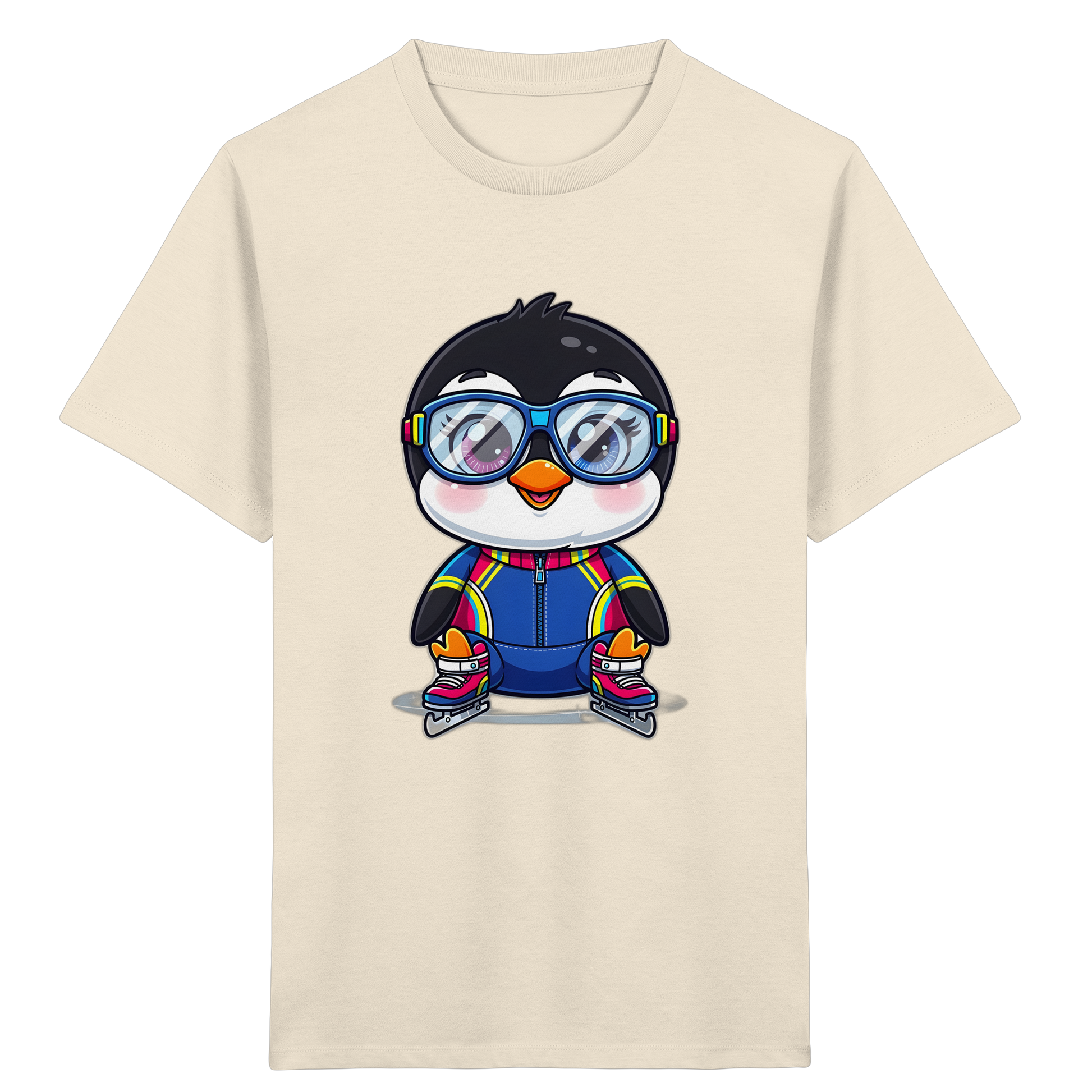 Entdecken Sie das perfekte T-Shirt für kleine Winterfans! Unser bezauberndes Kinder-T-Shirt mit dem fröhlichen Pinguin-Motiv ist ein echter Hingucker. Das Design mit dem niedlichen Pinguin auf Schlittschuhen, der mit Skibrille und breitem Lächeln die Eisbahn unsicher macht, zaubert garantiert ein Lächeln auf das Gesicht Ihres Kindes. Die leuchtenden Farben und der cartoonhafte Stil machen dieses Shirt zu einem Lieblingsstück für kleine Abenteurer.