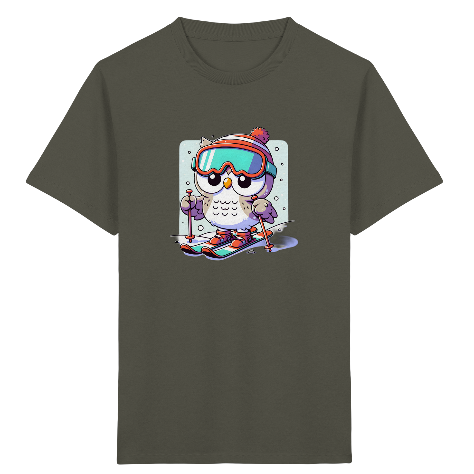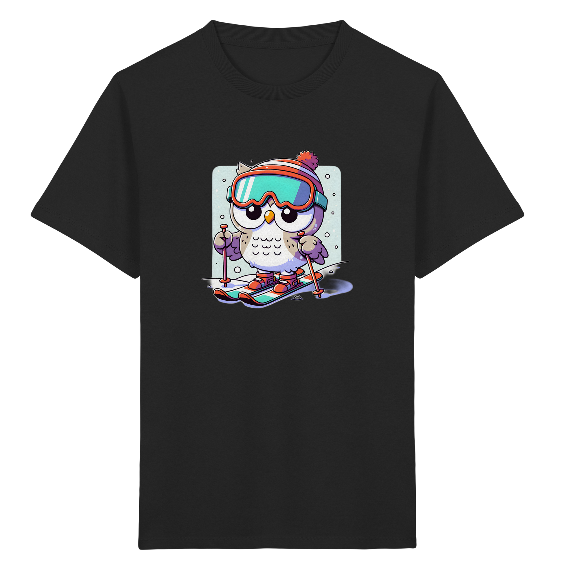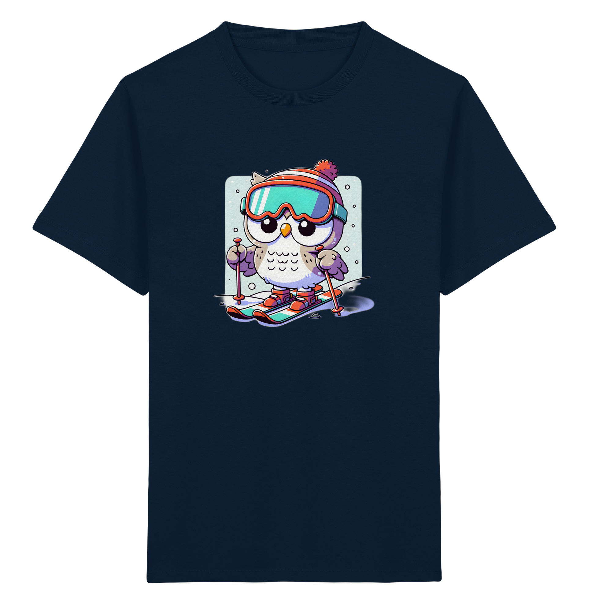 - Fröhliches Design mit einer Ski fahrenden Eule